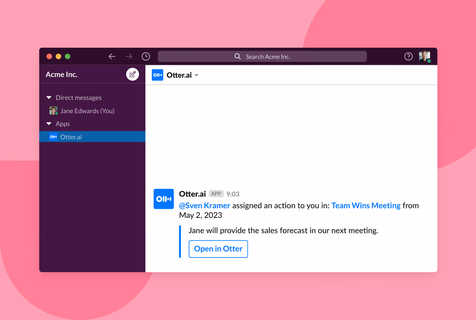 Otter automatically shares real-time updates with teammates in Slack, ensuring everyone is in the loop.