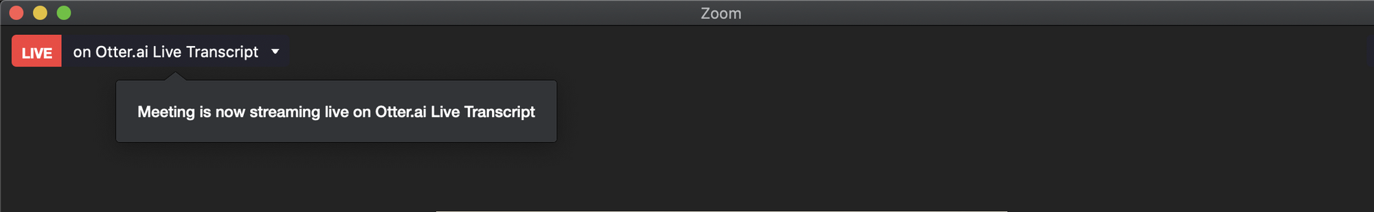 2. A red LIVE indicator will appear at the top left of the Zoom window, indicating that Otter has started live transcribing the meeting automatically.