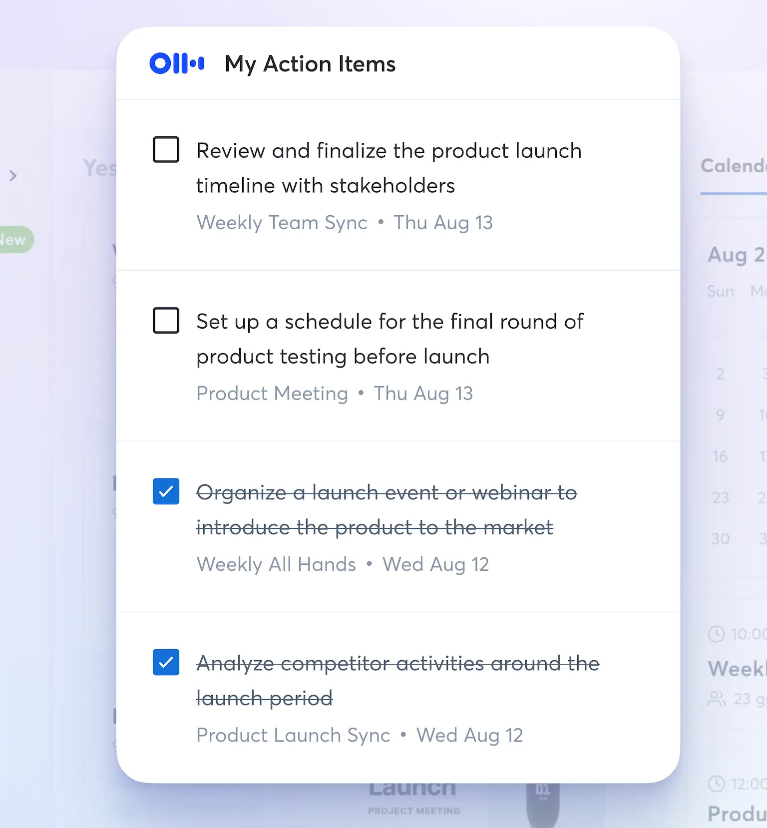 - The whole team can contribute to the summary and highlight their own action items in real time in just a few taps.