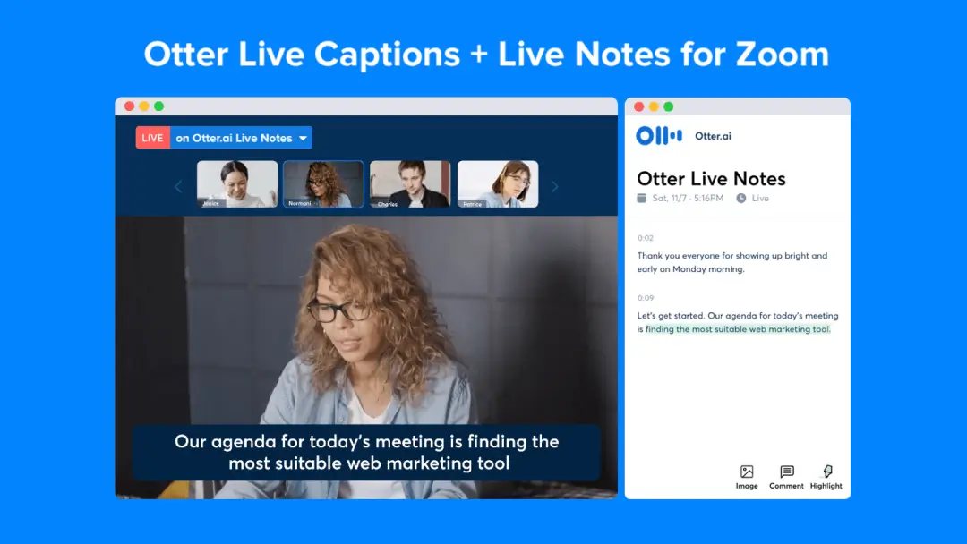 Otter Live Captions for Zoom adds AI closed captioning in real time for Zoom meetings and webinars you host. Participants can click a button to see live captions directly in the Zoom window.