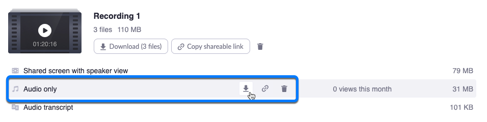 4. Next to Audio only, click the download icon to download the audio file (.m4a).